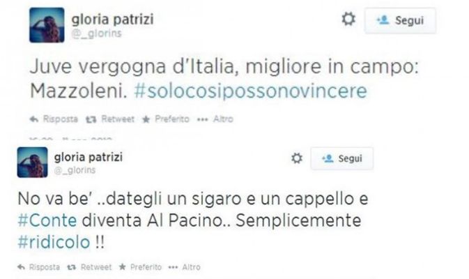 .. järjestäytyneet kannattajat ovat ottaneet viime päivien uutiset itse asiassa kaikkein rauhallisimmin. Se johtuu siitä kannattajan logiikasta, että kaikki joukkueen pelipaidan ympärillä on toisarvoista; pelaajat vaihtuvat, valmentajat vaihtuvat, seurajohtokin saattaa vaihtua, mutta kaarteen ensimmäiset kannattajat pysyvät. Mottonahan on: " Noi siamo la Juve", me olemme Juventus. Kaarteessa lähinnä sarkastisesti kummastellaan äkkiä noussutta myrskyä vesilasissa: "Onko Juventus tosiaan Antonio Conten valmentajapestin ikäinen seura ?" Pyörä pyörii, elämä jatkuu, Juventus pysyy. Muuallahan valkomusta piazza kiehuu vihasta ja ruokkii itseään melkoisella katkeruudella. Mielipidekyselyjen mukaan peräti 90 prossaa juventinoista vastusti Allegrin palkkaamista. Suurin osa faneista kohdistaa vihansa suoraan Allegriin ja tämän kumppaniin Gloria Patriziin, joka on siis kunnostautunut sosiaalisessa mediassa twiiteillä, joissa lady on mm. ehtinyt haukkua Juventusta "häpeälliseksi" ja verrata Antonio Contea "naurettavaan" Al Pacinoon. Suosittelen silti lämpimästi daamin nimen syöttämistä kuvahakukoneeseen.  Seurajohto saa tietysti osansa kaikesta loasta, itse asiassa kitkerimpien väitteiden mukaan koko homma oli tarkoin suunniteltu ja pedattu: vahvatahtoinen – Ferguson-tyyppistä – valtaa seurassa hamunnut Conte savustettiin ulos ja sisään astutettiin Allegrin kaltainen – Berlusconin hovissa tottelevaiseksi "Fidoksi" huomattu – seurajohdon nukketeatterihahmo, nk. aziendalista. Se lisää seurajohdon valtaa, sitä paitsi pitää muistaa, että Conte oli kannattajien tulenjohdin. Suurin osa faneista olisi valinnut tunteikkaan lecceläisen ennen seuran kylmäksi ja aristokraattiseksi koettua omistuspohjaa. Monet ovat toki pettyneitä myös Conteen, kyseenalaistaen hänen valkomustan sydämensä. Erityisesti irtisanoutumisen ajankohtaan kauden valmistelujen jo alettua ollaan tyytymättömiä. Myös syillä spekuloidaan. Seuran puoleltahan syy on vieritetty ex-valmentajalle, ja mercaton merkittävä rooli erossa kiistetään. Marottan mukaan eroavien teiden taustana oli ainoastaan se, että valmentaja ei löytänyt sisäistä paloaan ja halusi sapattivuoden. Huomionarvoista mielestäni onkin se, että osapuolet erosivat sittenkin ilmeisen vähillä vaurioilla ja saapasmaassa Antonion paluuta tulevaisuudessa takaisin Juventuksen peräsimeen pidetään ihan mahdollisena.
