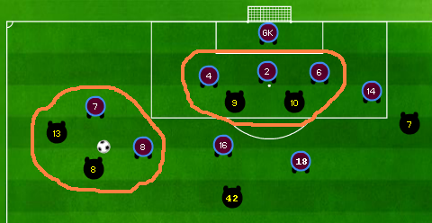 City lähti siis otteluun kahdella isolla hyökkääjällä, Dzekolla ja Negredolla. Kävisi myös järkeen, mikäli alkuperäinen tarkoitus todella oli aloittaa kaksi suoraviivaista laituria, Navas ja Milner. Palloa laitoihin, keskityksiä boksiin - kunnon kalinaa! City pelasikin lopulta ottelussa peräti 39 keskitystä! Pellegrini hyvin todennäköisesti ajatteli, että Dzeko ja Negredo pääsisivät pelaamaan 2-v-2 Villan toppareita vastaan. Harva joukkue nykyään pelaa kahdella niin puhtaalla sentterityypillä, kuin mitä nuo kaksi ovat, joten kyllä siinä varmasti olisikin ollut toppareille tekemistä ilman ylimääräistä miestä. Lambert kuitenkin lähti siis otteluun kolmella topparilla, joten puolustava joukkue sai miesylivoiman tuolle seudulle. Voihan sitäkin toisaalta pitää hivenen huolestuttavana, mikäli joukkue on niin riippuvainen Aguerosta, että heti kun tämä on pois, pitää heittää tikitaka roskiin ja ryhtyä kalistelemaan. Villan kolmen miehen keskikentälle oli haasteellista liikkua poikittain, joten kierrättämällä laidoilta löytyikin hyvin tilaa pelata palloa. Sinne muodostui usein esimerkiksi 2-v-2-tilanteita Cityn laiturin ja pakin sekä Villan wingbackin ja laitakeskikentän välille. Kotijoukkueen laitatopparit sen sijaan välttivät laidoille tulemista, vaan he pitivät 3-v-2-tilanteen vieraiden hyökkääjiä vastaan, mikä tietysti hankaloitti Dzekon ja Negredon mahdollisuuksia päästä palloihin. Kun Villan topparit katkoilivat näitä keskityspalloja, oli toisaalta varsin luonnollista, että City sai runsaasti - kaikkiaan 13 - kulmapotkuja. Näistä City teki sitten pari maalia. Villa vaikutti pelaavan kulmissa erikoista mies- ja aluevartioinnin yhdistelmää, jossa koko puolustava joukkue oli lähes pötkössä maalivahdin alueen rajalla. Kompany, Nastasic ja Negredo näkyivät olevan miesvartioinnissa, kun taas isoista miehistä Yaya ja Dzeko olivat vapaita. Avausmaalissa Yaya pääsikin laittamaan kakkospallon rauhassa sisään muutama metri maalivahdin alueen rajalta, kun niillä tienoilla ei ollut yhtään puolustavan joukkueen pelaajaa. Toisessa maalissa Dzeko taas pääsi taustalta hyvällä vauhdilla kiilaamaan paikaltaan hypänneen ja aluetta pelanneen Bakerin nenän edestä palloon. Hyökkäysstrategia siis tuotti kyllä tarvittavat maalit, mutta eihän kolmea saisi päästää. Tuskinpa Villa toisaalta noilla maalipaikoilla joka viikonloppu tekisi kolmea, joten pikkuisen saa Manuel manata huonoa tuuriakin. Huolimatonta pulustamistahan siinä silti oli, ja topparithan tuossa tekivät jokusen virheen, mikä vain osoitti sen, että eipä se ykkösparikaan ihan haavoittumaton ole.