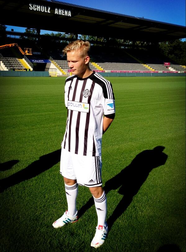 Aalenin twitteristä: Da ist er! #VfR Aalenin peliasun raidat sopivat hyvin hipsteri-Jollelle. Seurantaan.