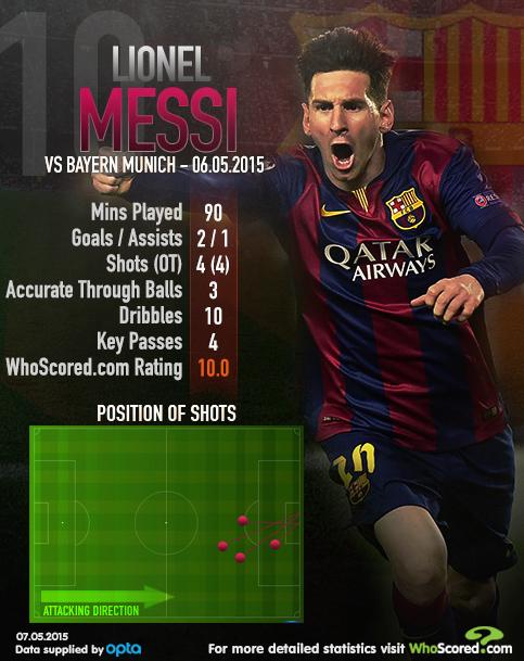 Bayernilta eräs surkeimmista esityksistä CL- semeissä koskaan, mutta onnittelut Messille, Barcalle ja faneille! Ehkä surkeimmista, mutta ei se kuitenkaan niin huono ollut kuin tulos antaa ymmärtää. Tai no, oli ja ei. Oikeasti vaaralliset maalipaikat meni Blaugranalle 7-1, maalit 3-0, eli siinä mielessä Bayern oli heikko ja Barcelona erinomainen. Toisaalta taas peli oli kuitenkin tasainen pallonhallinnan aaltoilun suhteen. Ensimmäiset 15 minuuttia mentiin päästä päähän ja vähän liian vaarallisen oloisesti Bayernin kannalta. Sitten Pep vaihtoi neljän alakertaan ja sai tasapainoa. Toisella puoliajalla Bayern oli pitkään kuskin paikalla ja oli enemmän pallollisena, mutta ei kuitenkaan järin vaarallinen. Viimeisen vartin aikana Messi sitten iski juuri kun näytti siltä, että Guardiolan toisen puoliajan suunnitelma olisi tuomassa 0-0 tasurin, mikä olisi ollut tyydyttävä tulos. Mutta kaikkea ei voi kontrolloida, vähiten Messiä... Nähdäkseni sekä Pep että Lucho olivat eilen onnekkaita: Pep pelin alussa, kun peluutti kolmen alakertaa, mikä oli selkeästi liian iso riski ja virhe, mutta maailman tämän hetken paras maalivahti Neuer pelasti. Luchon vuoro oli olla onnekas toisella puoliajalla, kun matsi näytti oikeasti menevän liiaksi Bayernin pillin mukaan eikä Lucho tehnyt mitään, mutta hänen onnekseen Messi teki. Bayernin poissaoloista ja niiden määrästä puhuttiin ennen ottelua paljon. Määrää oleellisempana ottelussa tuli kuitenkin ilmi se, miltä pelipaikoilta poissaolot olivat: Laidoilta. Alaba, Ribéry, Robben... Jokaista edellä mainittua Bayern kaipasi kipeästi, sillä laitapelaaminen oli Bayernilta vaisua, kun se yleensä on sen vahvuus. Bayernilla yleensä laidan taiturit ruokkivat keskustan kärkiä, koska keskeltä puuttuu ripaus luovuutta, eli vaikka Bayern piti kivasti palloa ja hallitsi paikoin keskustaa todella hyvin, ei se sitä kautta mitään todella vaarallista aikaan saanut. Nyt ainoa vieraiden paikka syntyi laidalta, kun Müller keskitti matalan keskityksen, mutta puolalainen ei osunut kunnolla palloon. Romanttisesti ajateltuna peli tuntui pitkään kahden suuren jalkapalloilija väliseltä taistolta: Manuel Neuerin ja Lionel Messin väliseltä mittelöltä. Ensin Messi petasi Suárezin läpiajoon, jonka Neuer torjui mestarillisesti. Suárez yritti samanlaista viimeistelyä kuin Klassikossa, mutta nyt vastassa ei ollut Casillas. Sittemmin Messi pääsi itse yrittämään maalintekoa ensin vaparista ja toisella puoliajalla boksin reunalta Neymarin jätöstä, mutta Neuer poimi nämä helposti. Pian Kirppu syötti Neymarin läpiajoon, mutta Neymarin haltuunotto oli hieman liian pitkä ja Neuerin mestarillinen vastaantulo pelasti maalin syntymisen. Kaikki näytti menevän jälleen saksalaismaalivahdin kannalta edullisesti, kuten MM-finaalissa. Mutta sitten Neuer teki pienen virheen ja syötti vähän turhan hätäisesti prässin alle joutuvalle Bernatille. Messi rankaisi ensin boksin ulkopuolelta, sittemmin toisessa maalissa nerokkaalla nostolla huonommalla jalallaan. Lopun läpisyöttö Neymarille oli viimeinen niitti. Nyt oli Kirpun vuoro.  Messin esitys ilman maalejaankin oli jo suorastaan erinomainen, kuten yllä olevan kuvan tilastoista voi lukea ja eilisestä pelistä nähdä. Mutta tuollaiset maalit järkyttävän tärkeään paikkaan kenties vaikeinta mahdollista vastustajaa vastaan nostavat Messin jälleen kaikkien muiden nykypelaajien yläpuolelle Pelén, Di Stéfanon, Cruyffin ja Maradonan rinnalle. Eikä ollut ensimmäinen kerta, kun Messi ratkaisee ison ottelun poikkeuksellisella tavalla. Loppuun vielä mielestäni yksi erittäin oleellinen seikka Barcelonan ja Bayernin ja jopa Barcelonan ja muiden välieräjoukkueiden välillä: Barcelonan pelaajat suorittivat yhteensä 28 onnistunutta kuljetusta eilen, Bayern kolme (kaikki Bernatin toimesta). Juve-RM-Bayern -kolmikon onnistuneet kuljetukset yhteensä välierien ensimmäisissä osaotteluissa 20. Barcelonalla on kyky horjuttaa ja epätasapainottaa vastustajan puolustusta kuljetuksien kautta... Messi muuten juoksi/liikkui eilen avanneista kenttäpelaajista vähiten. Surkea peli? Mielestäni jälleen osoitus siitä, ettei Messin peliesityksillä nyt, viime keväänä tai koskaan ole ollut kysymys juoksumäärästä tai sen vähyydestä... Alves: Paras peli vuosiin. Ja muutenkin viime ajat ovat sujuneet huikeasti brassilta. Mahdollisen jatkopahvin perässä Alves on innostunut pelaamaan paremmin vai onko taktiset muutokset auttaneet? Sanoisin, että molempia. Nykyisinhän Alves pelaa keskemmällä ja alempana kuin aiemmin, etenkin rakennusvaiheessa, mikä tarkoittaa sitä, ettei kenenkään tarvitse paikata Alvesia jatkuvasti laidalla, vaan Alves ehtii sinne itse. Toiseksi Alves pystyy keskeltä ja alempaa ajoittamaan pallonriistoja ja taklauksiaan vastahyökkäyksiin lähtevää vastustajaa vastaan. Eikä tämä tokikaan tarkoita sitä, että aiemmin Alvesiin kohdistunut kritiikki olisi ollut täysin epäreilua, päinvastoin, useimmiten se on ollut täysin ansaittua. Mutta kyllähän Alvesille on jatkopahvi pakko antaa...