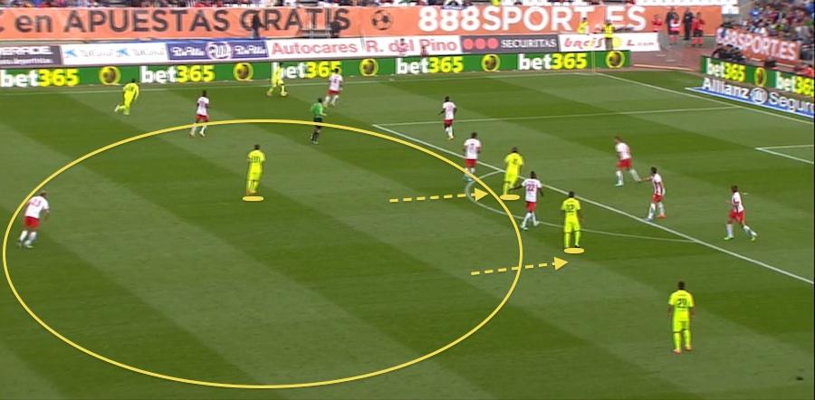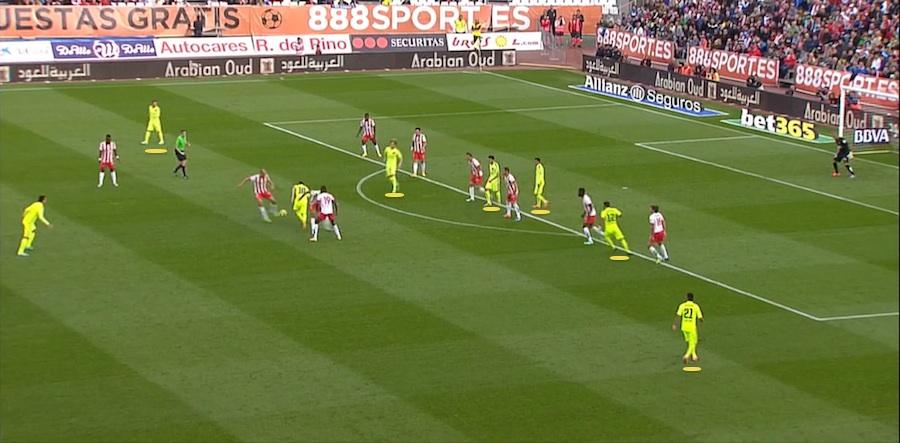 Luis Enrique: "Es el peor partido que hemos juagado esta temporada." Kierrostopikissa suurin osa illan matsista Almeríaa vastaan onkin jo käsitelty. Laitetaan muutama kuva tuomaan esiin asioita, joita Almería teki oikein ja toisaalta asioita, joiden parissa Lucholla riittää korjattavaa.  Almería puolusti 4-3-2-1 ryhmityksellä. Tuohon keskelle Barcelona ei päässyt pelaamaan palloja. Almerían keskikenttä dominoi kyseistä aluetta.  Tässä kuvassa näkyy iso ongelma. Rengastetulta alueelta löytyy yksi Barcelonan pelaaja ja sekin on Messi, jonka rooli joukkueessa ei ole reagoida mahdollisiin pallonmenetyksiin. Sekä Rafinha että Rakitic ovat juoksemassa ylös Almerián toppareiden syliin. Toisen tulisi pysyä rengastetulla alueella tarjoamassa syöttövaihtoehtoja ja tukea puolustussuuntaan. Lisäksi pituussuunnassa Barcelona ei pysty pelaamaan ollenkaan, kun kaikki ovat samassa linjassa...  Tässä kuva 1-0 maalista. Messi menettää pallon, mutta tähän ei olla millään tavalla valmiita. Ei suojata aluetta Messin takana, vaan peräti kuusi pelaajaa on sijoittuneena Messin yläpuolelle liki samaan linjaan. Surkeaa. Se on ihan sama peluutetaanko pivotena Busia vai Mascheranoa, jos muiden pelaajien sijoittuminen on tämän tilanteen kaltaista, sillä kukaan ei yksin pysty suojaamaan tuota tilaa, joka Messin takaa löytyy. Ei ainakaan kokonaisia 90 minuuttisia.  Toisella puoliskolla Busin sijoittumista korjattiin Bartran ja Mascheranon varpailta ylemmäs, mikä paransi Barcelonan keskikentän tilanteiden reagointikykyä hieman.  Luchon ratkaisu oli tuoda Suárez kärkeen (+Xavi keskikentälle) ja lopulta se riitti voittoon. Mascheranosta on sanottava, että niin paljon kuin hänkin on lokaa saanut niskaan vuosien saatossa - joskus ansaitusti, useimmiten ei - niin onhan hän ollut karkeasti sanottuna Barcelonan paras toppari viimeisen kolmen ja kohta puolen kauden ajalta kokonaisuudessaan. Toki tämä kertoo omaa surullista kieltään Barcelonan topparivaikeuksista, mutta ei mennä nyt niihin... Keskikenttä on saatava kuntoon, sillä loputtomasti hyökkäyskolmikko ja Mascherano eivät voi Barcelonaa pelastaa. Seuraavat vastustajat eivät ole yhtään sen helpompia kuin Almería, vaan päinvastoin: Sevilla (Camp Nou), Apoel (v), Valencia (v). Luchon täytyy teroittaa sijoittumiseen liittyviä asioita. Lisäksi joukkue ei yksinkertaisesti voi pelata ilman keskikentän kontrolloivaa pelaajaa. Kun Xavi ei pelaa, täytyy rooliin sijoittaa joko Iniesta, Busi tai Samper. No, toivottavasti maaottelutauolla ei tule leiriin lisää loukkaantumisia. Tauon jälkeen kuitenkin Iniestan ja Mathieun pitäisi palata takaisin pelaavien kirjoihin.