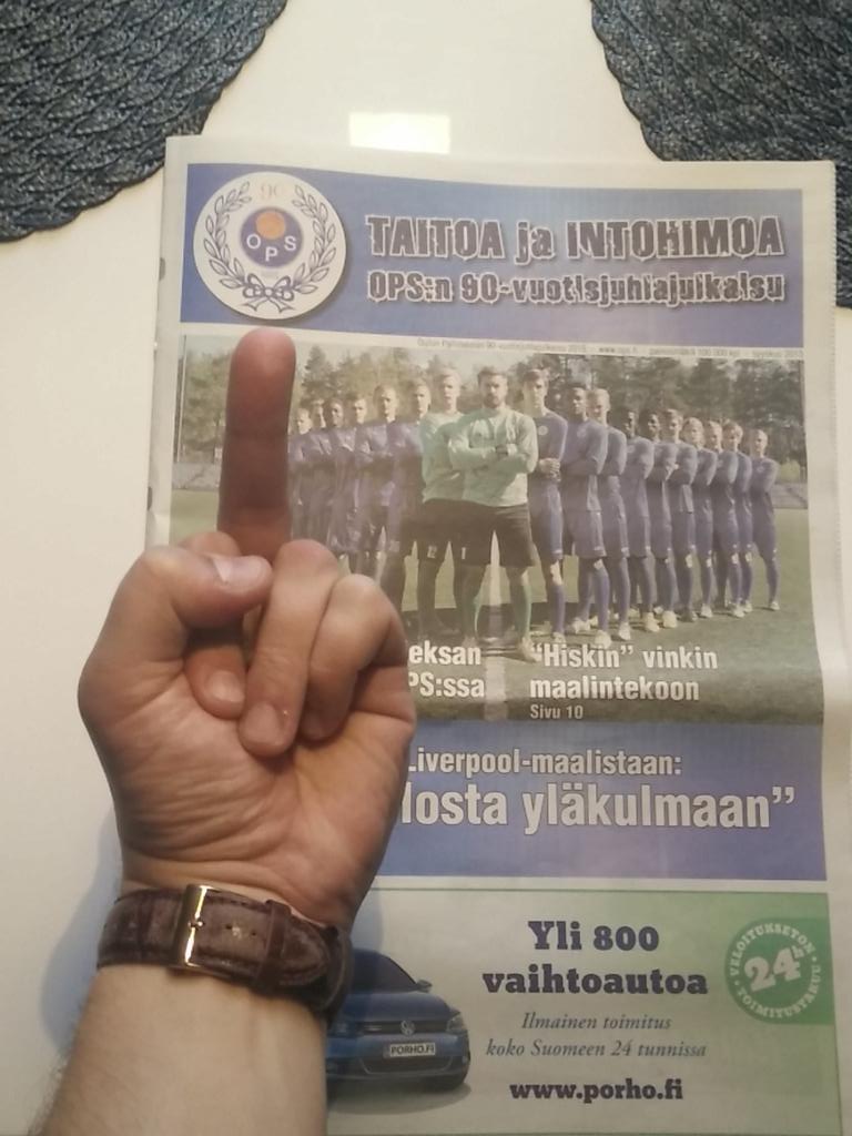 Varmaan Miiga käynyt laittamassa. Olethan ahkerasti muistanut tänne kirjoittaa. Oliko postinkantaja kalju, OPS:n verkkarit päällä ja huusi "pusap". Mieti vähän mitä tänne kirjoitat, ymmärrän kyllä kun oma seura elää talouden ehdoilla.