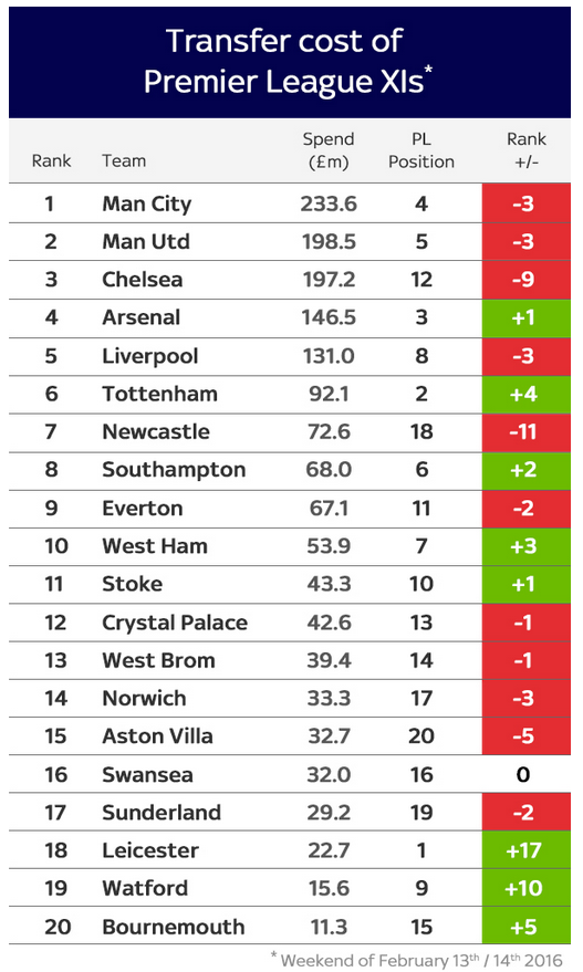 Kyllä täälläkin on aloteltu jo valmistautuminen pahimpaan. Käsittämättömintä on jotenkin toi asenne koko touhuun, ihan kun vaaraa putoamisesta ei olisikaan. Ehkä siellä uskotellaan, että kun tammikuussa saatiin vahvistuksia niin ei muka "voida" pudota. Mäkkis ei ole saanut minkäänlaista käännöstä aikaan ja seurajohdon vankka tuki on ja pysyy. Vaikka loppukausi sujuisikin paremmin niin millään muotoa tämä kausi ei tule olemaan onnistunut. Virallinen tavoite taisi olla europeleihin tai kahdeksan joukkoon? Aikamoinen loppukiri saa olla jos noille sijoille venytään! Se mikä on pieni muutos aiemmasta niin Ashleyn suuntaan ei voida enää ihan niin paljon syyttävää sormea osoittaa. Lompakko on ollut auki ja vahvistukset valmentajan haluamia pelaajia. Ja jotta kyllästäisin kaikki statsteillani niin ihan mielenkiintoinen on tuo avaus-ykstoistasen hinta sijoitukseen verrattuna. Kasin sakkiin odotukset ei ole tähänkään tilastoon nähden ole täysin tuulesta temmattua tavoite. Ja kyllä mun fiilis on, että tuon materiaalin pitäisi noista top10 sijoista tapellakin...  Jestas sentään toi Leicester on kyllä kova jengi!