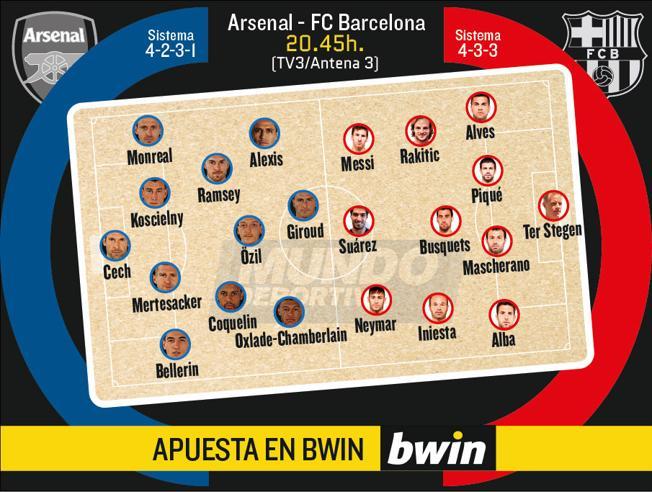 Lontooseen lähtevät pelaajat: Ter Stegen, Bravo, Masip; Piqué, Rakitic, Sergio Busquets, Dani Alves, Iniesta, Suárez, Messi, Neymar, Mascherano, Munir, Jordi Alba, Sergi Roberto, Adriano, Aleix Vidal, Vermaelen y Mathieu Rafinha (louk.), Sandro, Douglas, Bartra (tekninen päätös), Arda (pelikielto) sivussa. XI de gala kentälle ja voitto kotiin.