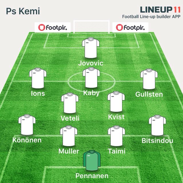 Veteli on ilmeiseti ainakin Kemin ensimmäisissä Liigacupin otteluissa pelannut oikealla laidalla ja SJK:ta vastaan keskellä. Gilliganin avauspaikka tarkoittanee kuitenkin, että paikka löytyy oikealta jälleen. Toki Djalón voisi varmaan siirtää vasemmalle Vetelin ollessa kymppipaikalla. Mielenkiintoista nähdä. ———————————————————————————— e. ryhmitystä korjattu (Veteli ja Gullsten vaihtelevat laitoja) SopimuspelaajatTestipelaajatJuniorit Poissa: Ricardo; Saksela; Mäkitalo; Kokko. Testipelaajat: Nahom Gebru (179cm 19v Saksa/Eritrea), Ransford Osei (172cm 25v Ghana). RoPS: 12 J.Ojaniemi; 3 Lahdenmäki; 8 Taylor, 15 J.Hyvärinen, 17 E.Kantola, 10 Nganbe Nganbe. ———————————————————————————— 1 Back2 Kalermo 47 Hämäläinen 86 Jammeh 6 Pirinen 4 Okkonen c 16 Saxman21 A.Heikkilä 14 Muinonen 18 N.Gebru 19 R.Osei———————————————————————————— 9 Ions c 17 Gullsten 10 Djaló 8 Veteli 5 Gilligan 6 Kvist88 Könönen 2 Bitsindou 23 Taimi 13 Turpeenniemi 1 Pennanen———————————————————————————— PS Kemi: 12 Impiö; 4 Gustavsson, 22 Muller, 20 Räihä; 7 Tyystälä, 19 Jokinen; 21 Berg. Poissa: -; Louste, Lehosmaa, C.Stewart; Eissele, Jovovic, Wiena. Testipelaajat: Muller Pereira Roque (189cm 25v Brasilia).