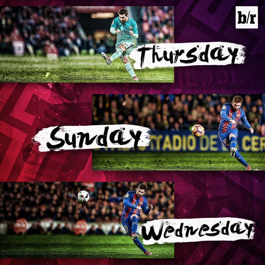7:40 Messi nostaa läpisyötöllä Neymarin 1vs1-tilanteeseen Asenjoa vastaan, mutta brassin viimeistely menee suoraan maalivahtia päin 8:00 Messi nostaa pystysyötöllä tällä kertaa Suárezille tekopaikan 5-viivan kulmalle, mutta toppari pääsee häiritsemään urugualaisen viimeistely-yritystä, joka sekin lopulta suuntautuu päin Asenjoa 32:18 Sergi Roberto ja Suárez petaavat Neymarille tekopaikan 5-viivalle, mutta Mario Gaspar blokkaa laukauksen 42:46 Messi puskee ylärimaan kulmapotkusta 52:17 Messi antaa 16-alueen kulmalta vapaapotkun nopeasti Neymarille, joka pääsee laukomaan noin kymmenestä metristä; veto suuntautuu liian voimattomana liiaksi keskelle joten Asenjo liimaa pallon helposti 71:50 Neymar syöttää vasemmalta 16-alueen rajalle Messille, joka pääsee laukomaan kohti Villarrealin maalia. Bruno blokkaa vedon kuitenkin kädellään, minkä seurauksena tilanteesta syntyy ainoastaan kulmapotku. Pallo olisi pitänyt viedä pilkulle 72:46 kulmapotkun jälkitilanteesta Iniesta syöttää Messille, joka pääsee laukomaan noin 15 metristä; laukaisun seurauksena pallo kimpoaa sisätolpasta takaisin kentälle 74:17 Messi kuljettaa muutaman kymmenen metrin kuljetuksen keskustassa, kunnes syöttää pallon oikealle Suárezille Villarrealin boksiin, joka harhauttaa pakin pois tilanteesta ja potkaisee pallon voimalla kohti takakulmaa, mutta Asenjo torjuu. Vastaavanlaisesta tilanteesta syntyi syksyllä Blaugranan 1-2 voitto-osuma Sevillaa vastaan 74:22 Edellisen tilanteen jatkotilanteessa Arda Turan pääsee puskemaan pallon 5-viivalle Neymarille, jonka puolittainen saksipotku suuntautuu kuitenkin selvästi yli maalin 89:34 Messi laukoo vapaapotkun 19 metristä yläkulmaan, ottelu päättyy 1-1
