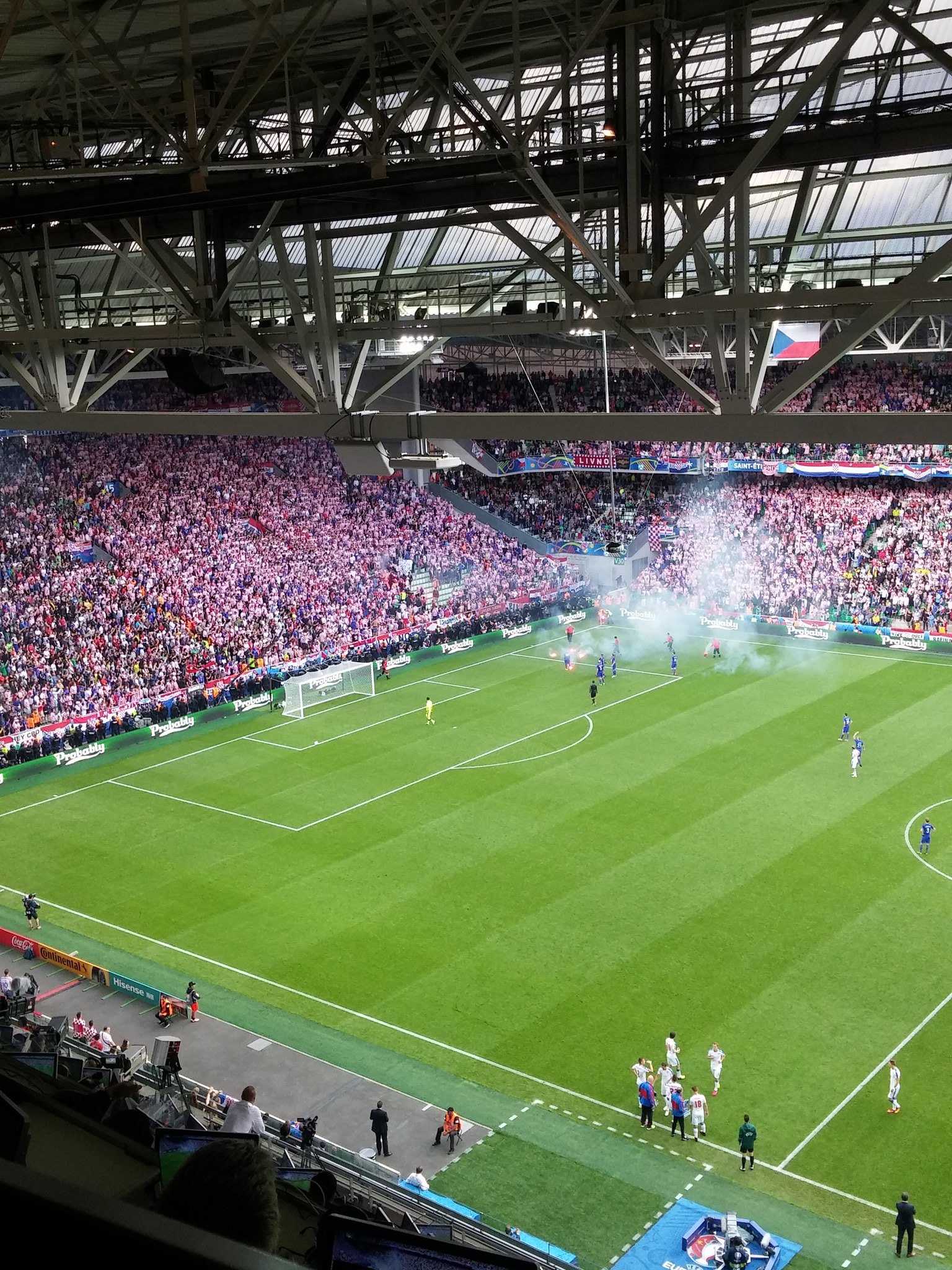 Tähänhän näiden kisojen turvallisuussuunnitelmissa on erityisesti kiinnitetty huomiota. Toki uhkana on pikemminkin pidetty ISIS:n terrori-iskua eikä huligaaneja, mutta sama johtopäätös: katsomotappelussa tai pienessä terrori-iskussa (esim. joku alkaa heilua katsomossa puukon tai käsiaseen kanssa) kuolee yleensä harvoja, mutta sitä seuraavassa paniikissa voi puristua ja tallautua henkiltä useita kymmeniä. Suuri osa yleisötapahtumien katastrofeista (niin Heyselistä Hillsboroughlle tai Roskildesta Love Paradeen) on syntynyt siitä, että liikaa ihmisiä pakkautui liian pieneen tilaan. Nyt stadionit on muutettu mm. niin, että ainoa pakoreitti katsomosta pois ei ole se väistämättä liian pieni porraskäytävä: esim. katsomonosien välillä ei ole aitoja ja kentälle pääsee helposti. Huomaattehan esimerkiksi, että maalien jälkeisessä juhlinnassa kannattajien ryntäämistä kentälle estetään vain sillä, että järjestysmiehet vetävät vain köyden maasta ylös kannattajakatsomon eteen. Tästä toki tulee niitä ongelmia, että venäläishulit pystyivät helposti hyökkäämään englantilaistuulareiden kimppuun tai kroaattifani suorittamaan pitch invationin, mutta tämä on aika pientä pahempiin uhkiin verrattuna.