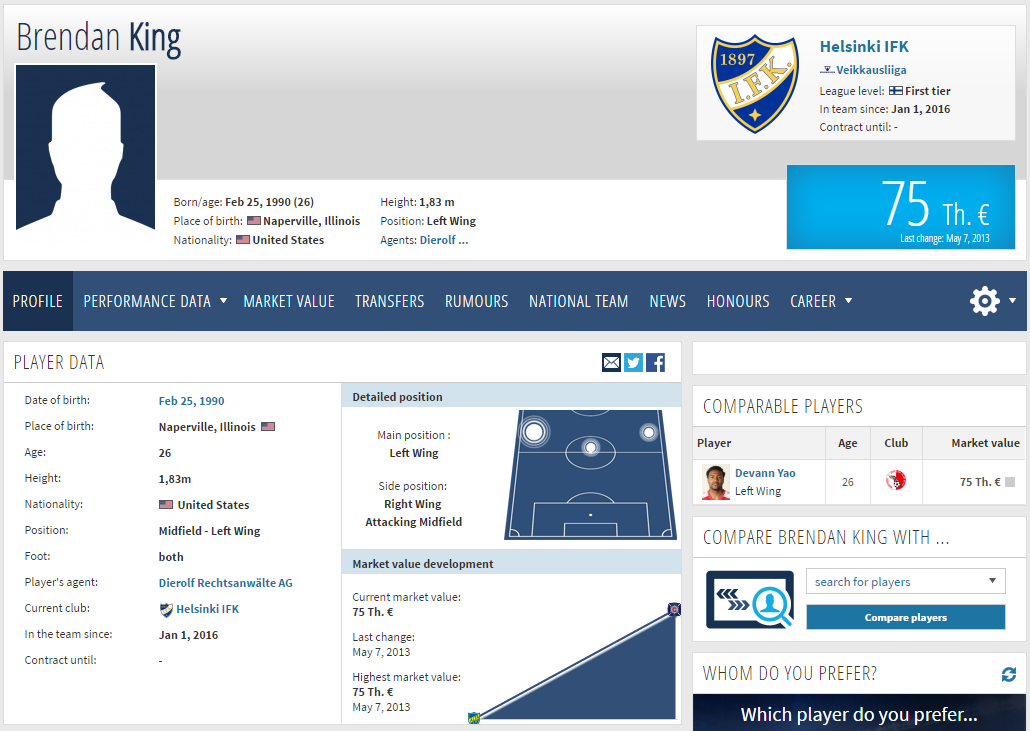 Onko tästä kaverista mitään tietoa? Ilmestyi tänään seuran transfermarkt-sivuilla.
