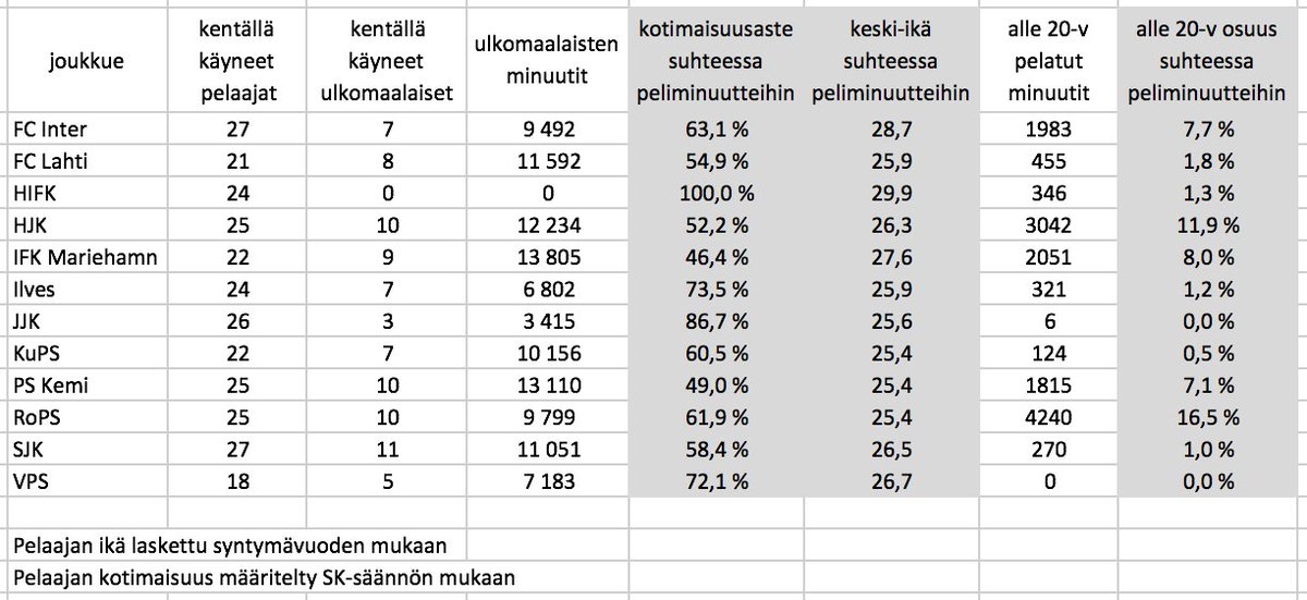Eroja on, mutta ei nuo erot niin suuria ole, että niillä voisi selittää Vepsun hyytymistä. Vepsulla kuitenkin enemmän pallonhallintaa kuin Klubilla, ja peli Peten toivomassa kontrollissa. E: Mainittakoon vielä, että esim. Lahdessa 11 eniten pelannutta pelaajaa on pelannut keskimäärin 1946 minuuttia, eli 150 minuuttia enemmän kuin keskimääräinen Vepsun avauskokoonpanon pelaaja. Mutta heillä ei tietenkään neljää europeliä, joten kokonaisminuutit alhaisemmat. IFK Mariehamn on puolestaan kuormittanut avausmiehistöään vielä Lahteakin enemmän. Heillä 11 eniten pelannutta on pelannut keskimäärin 1998 minuuttia eli yli 200 minuuttia enemmän kuin Vepsussa. Ja heillä oli pari europeliäkin, vaikka eivät tainneet kuluttaa kuin palloa verkosta poiminutta maalivahtia. Juuri ennen romahdusta kuormitus oli kuitenkin poikkeuksellisen kovaa, kun oli neljä europeliä matkustuksineen ja pelaajia tippui pois loukkaantumisten ja pelikieltojen vuoksi. Itselleni on hyvin vaikea pistää totaaliromahdus pelkästään pelitavan piikkiin, joka toimi 1,5 vuotta ja jota pelaamalla nähtiin parasta futista, mitä Hietalahdessa on koskaan nähty.