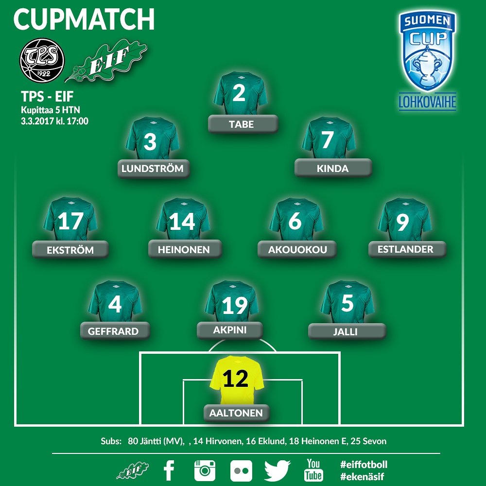 Toppari-Taben näkeminen kärjessä hämmentää edelleen. Ollut kuitenkin kyseisellä paikalla jokaisessa cupin ottelussa ja viime vuonnakin nostettu kärkeen muutamaan otteeseen, kun EIF hakenut tasoitusta.
