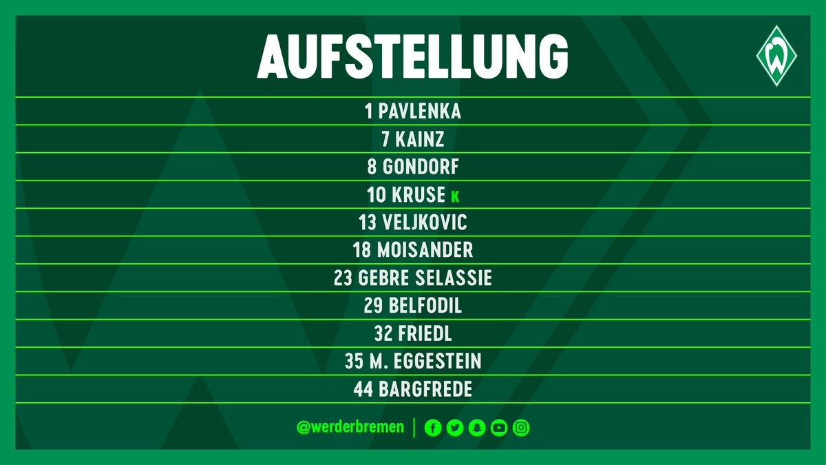 Penkillä: Drobny - Caldirola, Bauer, Gondorf, Rashica, Junuzovic, J. Eggestein Hieman yllättäen Kainz avariin Junon tilalle, muutenhan tuo on aika lailla se odotettu avaus.