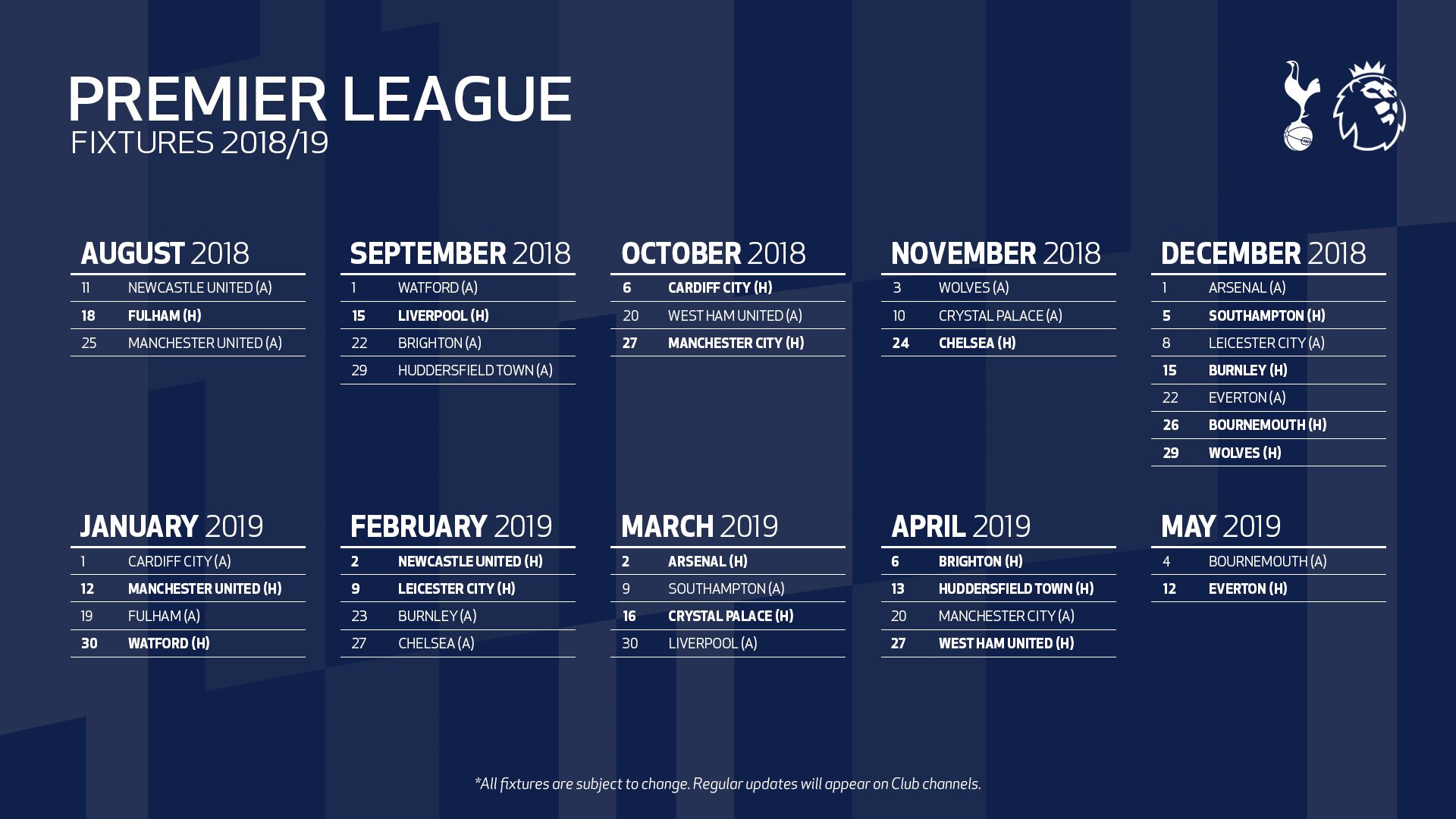 Uudella stadionilla aloitetaan syyskuussa Liverpoolia vastaan. Vain tuo Fulham ottelu pelataan Wembleyllä.