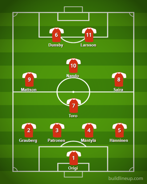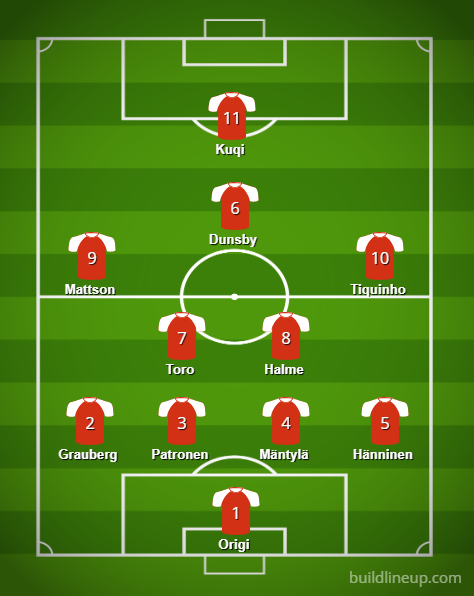Hassu ei mua kyllä cupissa vakuuttanut vielä, mutta jos on pelannut edellisiä harkkapelejä hyvin niin alottaa varmaan sit vasemmalla. Kuqilla tulee varmasti olemaan prässin kanssa vaikeaa. Ehkä ei edes mahdu avariin, vaikka on tullu ison profiilin pelaajana. Tohon toiseen voi laittaa Nandon tilalle Dunsbyn ja ottaa Tiquinhon toiseksi kärjeksi, niin ainakin on yläpuoliskolla juoksuvoimaa. Tai ylemmässä versiossa kärkeen Dunsby ja Saira mukaan keskikentälle. Luulen että neljän linjalla HIFK lähtee, Kankkusen kolmen topparin systeemiä ei oo enää käytetty.