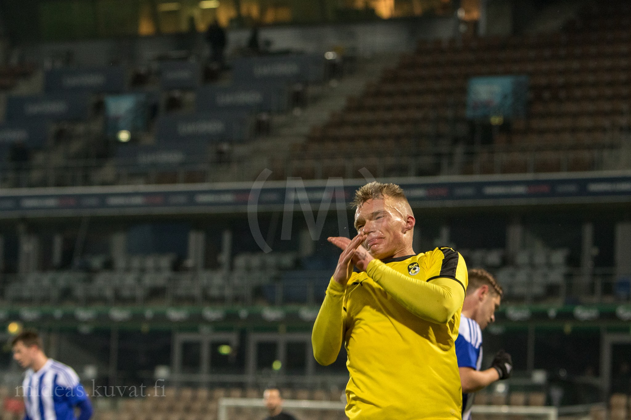 Onnekseni löysin kentänreunalta pienehkön puisen lavan, jota raahailin erityisesti toisella jaksolla pitkin ja poikin. Pysyi persaus edes vähäsen kuivana. Oma jännityksensä oli myös matsin jälkeen, kun hetken verran luulin, että minut lukittiin kentälle. Pääsin kuitenkin hengissä pihalle ja kotiinkin asti. Ens kerralla voisin kuvitella, että vastaavassa matsissa on vähäsen erilainen tunnelma.