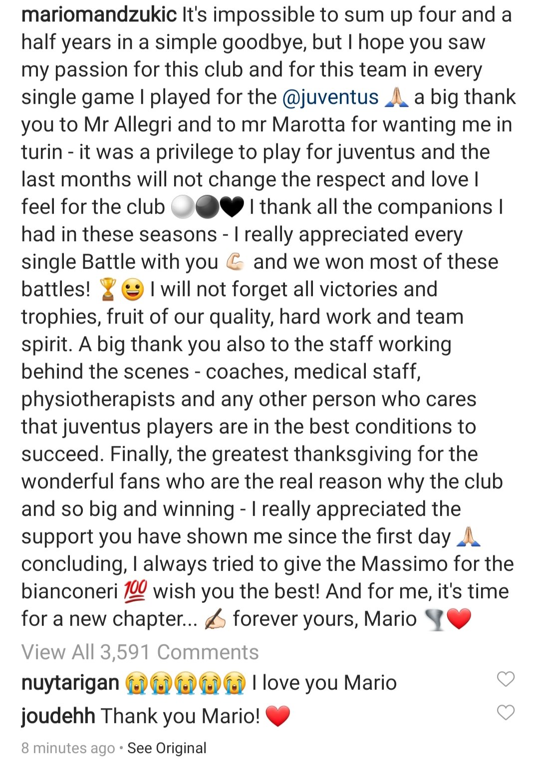 Ihme, ettei täällä nopeasti silmäistynä ole mainintaa muuan kroaatin (lopullisesta) poistumisesta. Mielestäni Mandžukić oli 2010-luvun parhaita keskushyökkääjiä Euroopassa ja huipulla pelanneista se kaikkein aliarvostetuin. Rohkenen väittää, että toista olisi arvostus ollut, jos olisi ollut vaikkapa saksalainen tai ranskalainen...