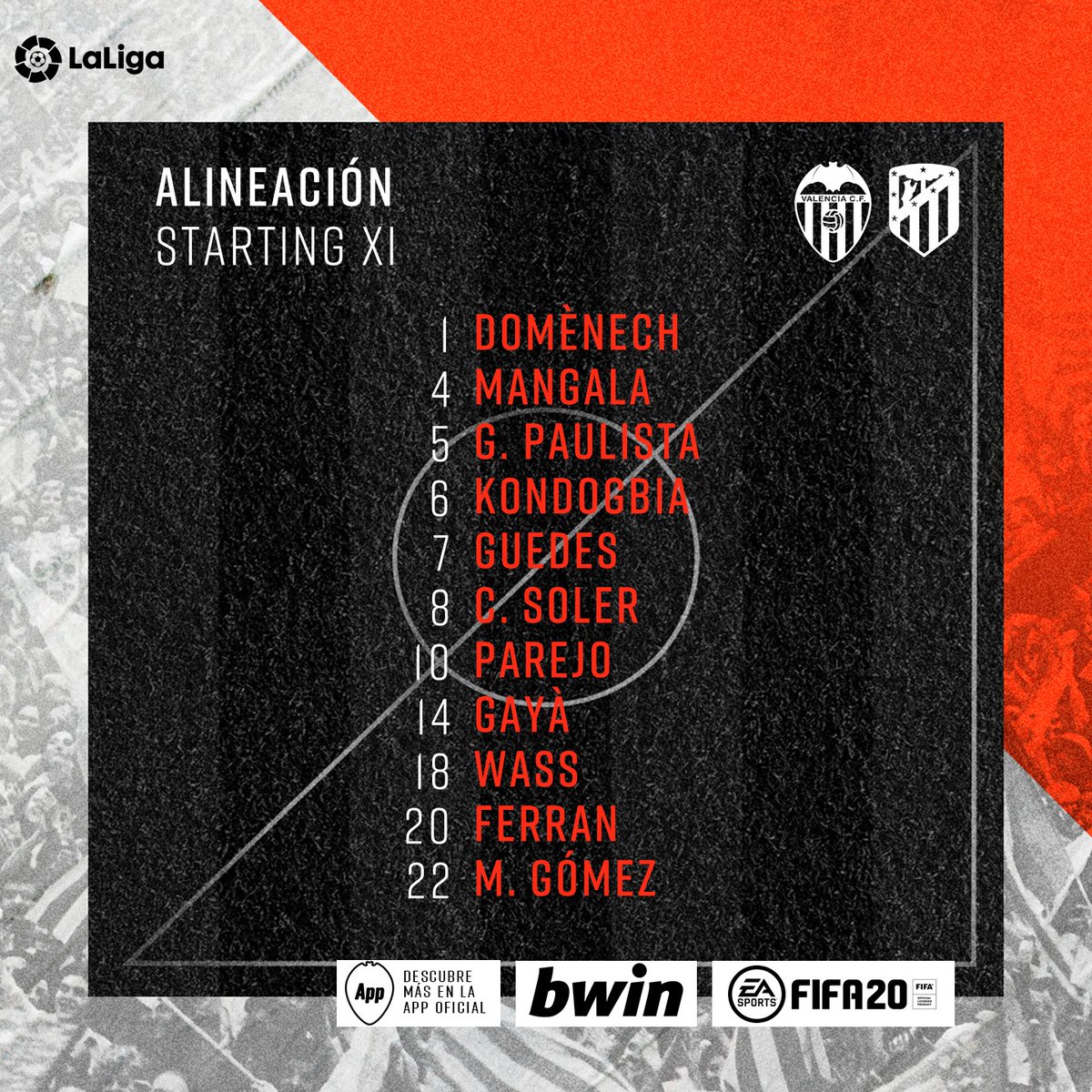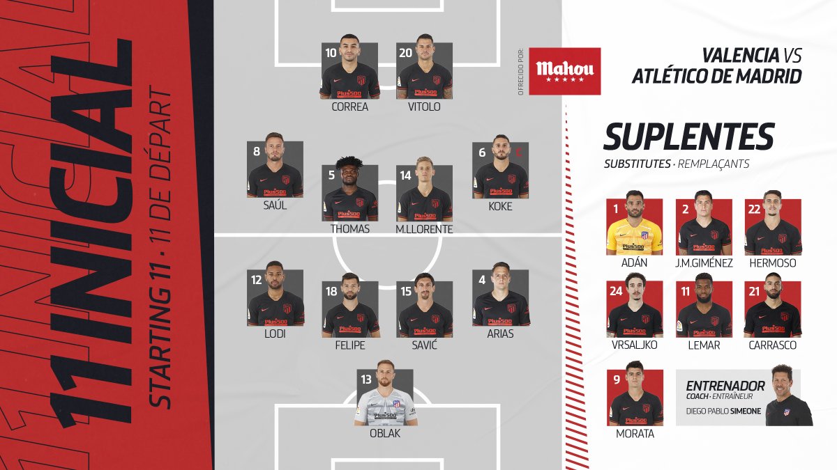Ei ole taitoa Valencialla purkaa Ticon prässiä. Edit: Guedes totaalisen ulkona pelistä. Olisihan tämä ollut vähän kivempi peli kahdella kärkimiehellä, Ferran sitä ei todellakaan ole, vaan laituri.  Atleticolla ei oo edes sitä yhtä kärkimiestä
