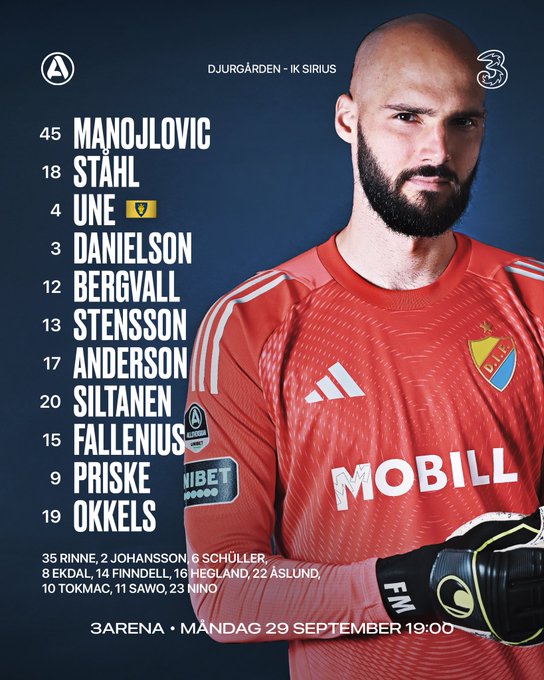 Allsvenskanin oma sekä Sportsbladetin livekatiska väittävät myös, ettei Schüller olisi penkillä. Olisiko sitten pudonnut juuri alkulämmöissä taas sopivasti maaotteluiden kynnyksellä Liiton sivut puoltavat tätä: https://www.svenskfotboll.se/livescore/#?date=2025-09-29&game=6143346