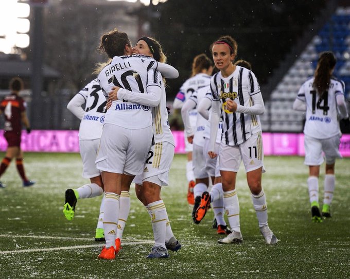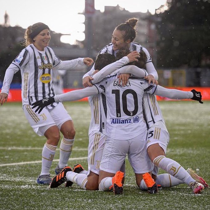 Serie A:ssa Juventuksen ottelut jatkuvat ilmeisesti tammikuussa: ilmeisesti koronatilannekin aiheuttaa epäselvyyksiä. Juventus johtaa sarjaa vaatimattomasti puhtaalla pelillä 10 ottelun jälkeen, mutta Milan on vain kolmen pisteen päässä. Ilmeisesti seuraava ottelu on kuitenkin yhdellä ottelulla ratkeava Supercup AS Romaa vastaan 6.1 https://int.soccerway.com/matches/2021/01/06/italy/super-cup-women/italy-fc-juventus-spa/ssd-roma/3431888/. (En tiedä millä logiikalla vastassa on juuri Roma, kun cup jätettiin tosiaan pelaamatta loppuun kaudella 2019-2020.) Tänään pelattiin tosiaan Supercupin välierä: normaalistihan tällaiset supercupit pelataan liigamestarin ja cup-voittajan välillä yhdellä ottelulla, mutta kun cup lopetettiin kesken koronan takia edellisellä kaudella, myös liigamestari Juventus näemmä laitettiin karsimaan finaalipaikasta. Ja Juventuksen naisten twitterin ( https://twitter.com/juventusfcwomen, joka näemmä retweetannut myös Hyyrysen oman twiitin https://twitter.com/tuijahyyrynen/status/1346845435718230016) mukaan se finaalipaikka tuli jatkoajan jälkeen 2-1, varsinaisen peliajan päätyttyä 1-1. Samaisten twiittien kuvista voi päätellä lumisen kelin lisäksi, että Hyyrynen ilmeisesti pelannut täydet minuutit. Finaali ilmeisesti ohjelmassa jo tulevana sunnuntaina 10.1: vastassa joko Fiorentina tai Milan, joiden ottelu alkaa ilmeisesti nyt klo 19. e. ei ihme, että Hyyrynen näkyy juhlimassa, koska näemmä ratkaissut pelin jatkoajan loppuminuuttien keskityksellään: e2. Löytyihän se suoritus videollakin https://youtu.be/_fJ1cnU9hTw?t=8937 ('Bravissima Tuija Hyyrynen!')