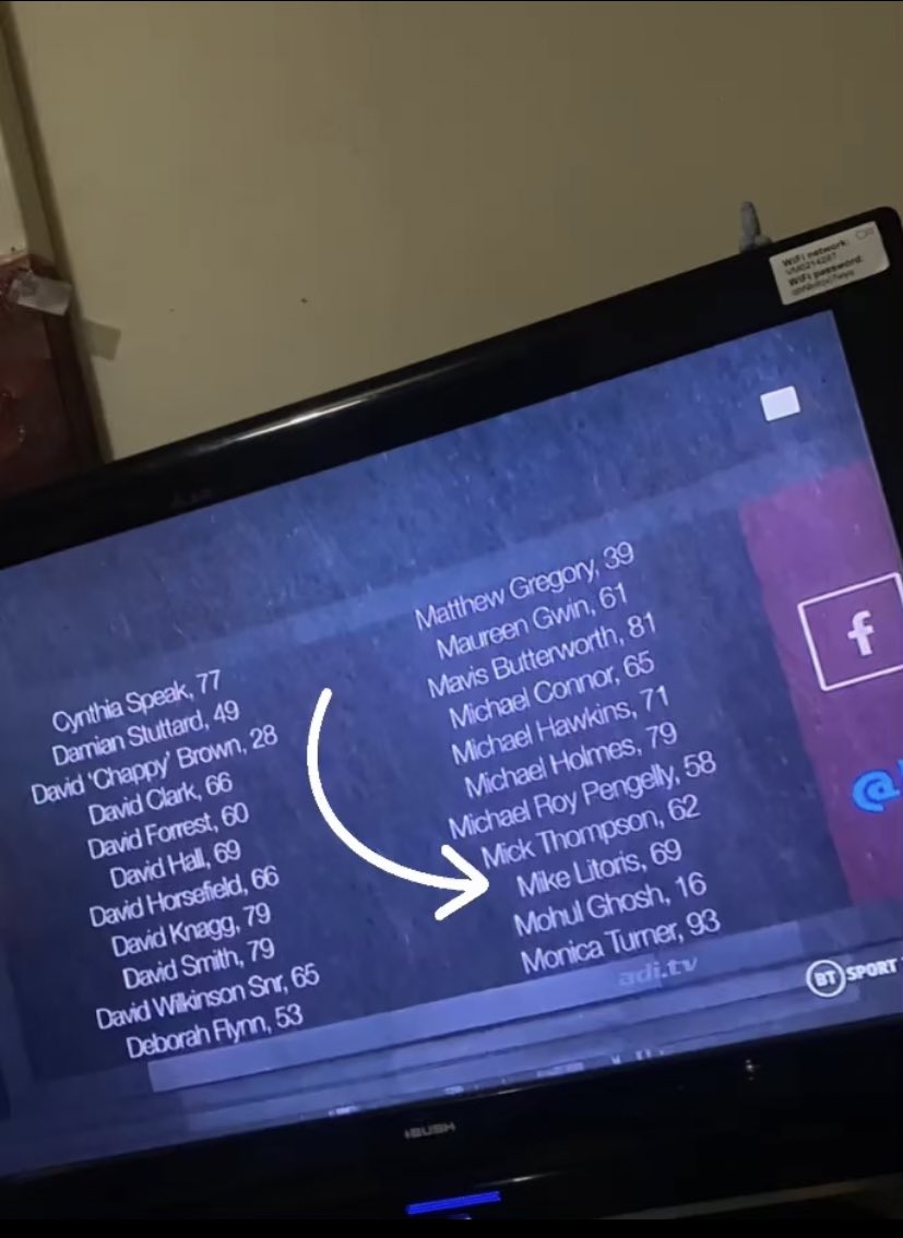 Burnleyn näyttötaululle oli päässyt livahtamaan muiden nimien joukkoon näköjään Mike Litoris, 69.