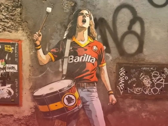 Montin kaupunginosaan valmistui kaksi päivää ennen ottelua katutaiteilija Drugin De Falchin muistomuraali, joka joutui jo ensimmäisenä yönä sabotaasin kohteeksi. Taitelija kuitenkin ennätti korjata teoksen pelipäiväksi ja viimeisten tietojen mukaan se on saanut olla nyt kokonaisuutena koskemattomana. Drugi on vastannut aiemminkin useista AS Romaa ja sen ympärillä olevaa kulttuuria käsittelevistä katutaideteoksista. Roomassa yksi hyvä tapa suunnitella kierrellä kaupunkia onkin kiertää valikoituja katutaideteoksia ja muraaleja, tutustuen samalla uusiin kulmiin.