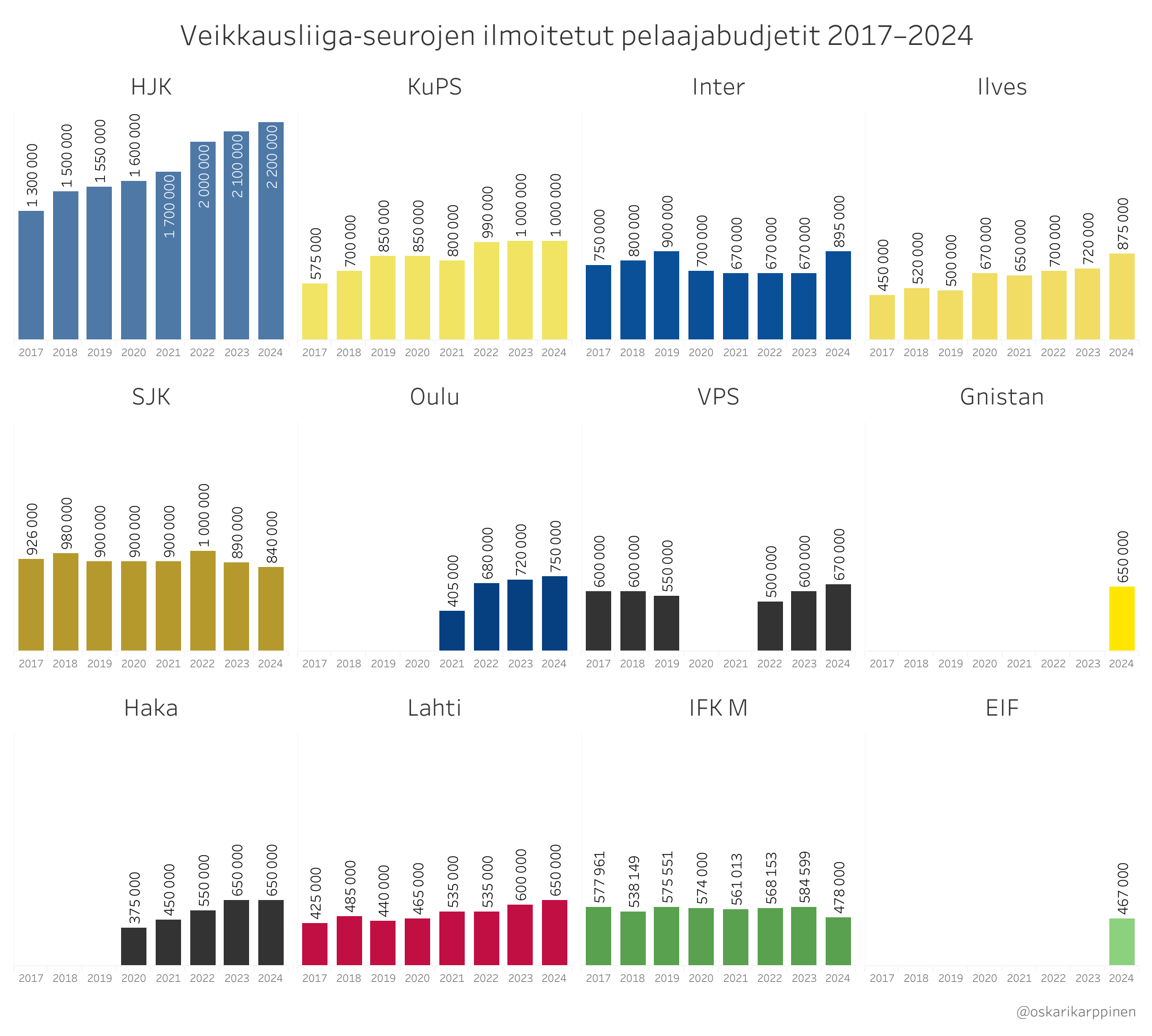 Mutta alla siis niiden jengien talousluvut jotka pienellä vaivalla löysin, taitaa vain pari jengiä puuttua viime vuoden Allsvenskanista.